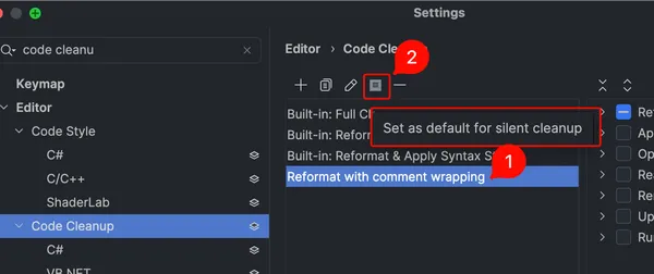 - Make a custom Code Cleanup profile
