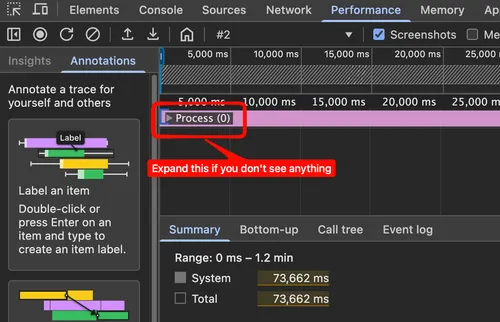.chromium.jsonfile.- If you don’t see anything, expand “Process (0)” and click any of the highlighted threads: