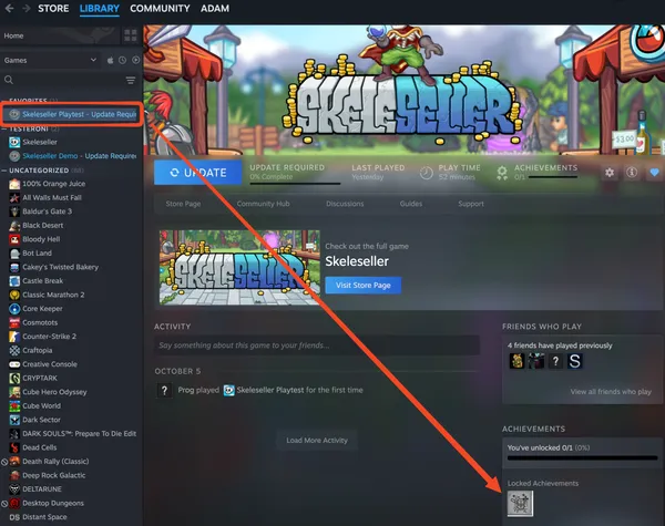 - At least as of 2025, it does not seem possible to bulk-add achievements to your game. This makes it tedious to keep achievements in-sync between the playtest and full versions of your game.