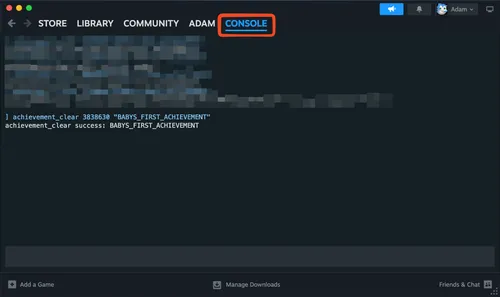 /Applications/Steam.app/Contents/MacOS/steam_osx -console - You’ll see “Console” show up in Steam itself: